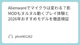 Alienwareを手に取ったとき、その洗練されたデザインと圧倒的なパワーに心を奪われないゲーマーはいません。しかし、使い込むうちに「もう少しマルチタスクを快適にしたい」「タルコフのような重いゲームでスタッタリングを減らしたい」と考え、メモ...