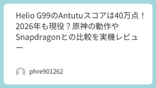 スマートフォンの性能を測る指標として欠かせないAntutuベンチマーク。超低価格モデルとして話題のを手に入れた時、多くの人が抱く疑問は「1万円台のスマホで本当にまともに動くのか?」という点でしょう。結論から言えば、のAntutu総合スコア(...