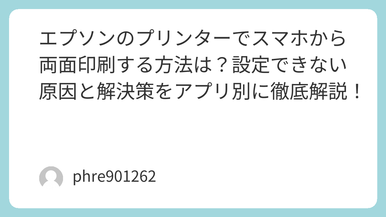 「スマホからサクッと資料を印刷したいけれど、紙がもったいないから両面で出したい…」そう思ったことはありませんか?エプソンのプリンターを使っていれば、実は手元の[amazon_link product=”iphone”]や[amazon_link product=”Androidスマホ”]から数タップで設定が可能です。