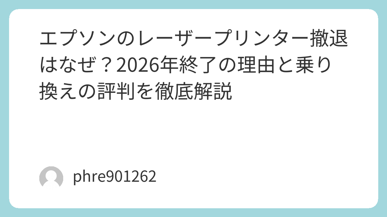 オフィスの片隅で長年働き続けてきた[amazon_link product=”LP-S6160″]や[amazon_link product=”LP-S7160″]を見つめながら、そう絶句した担当者の方も少なくないはずです。エプソンは2026年までにレーザープリンター本体の販売を終了し、インクジェット方式へ完全移行することを発表しました。