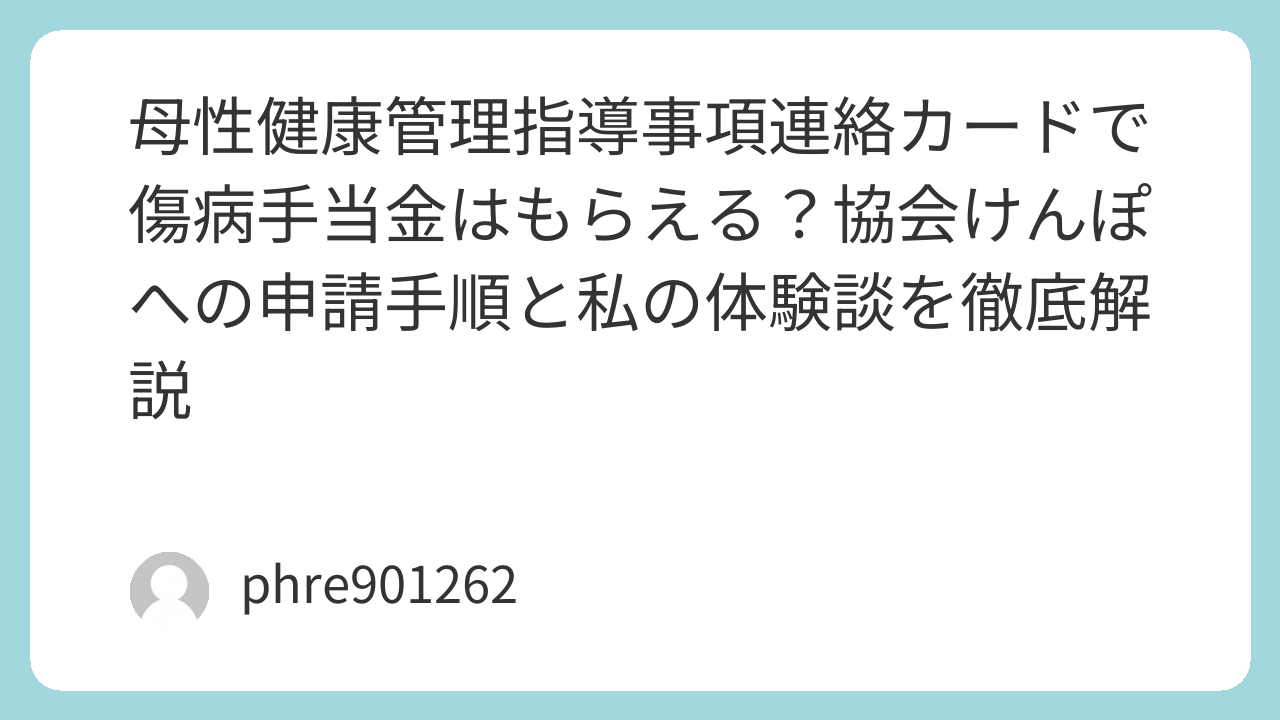 今回は、私が実際に母健連絡カードを使って協会けんぽへ傷病手当金を申請したリアルな体験談とともに、スムーズに受理されるための手順を分かりやすくまとめました。