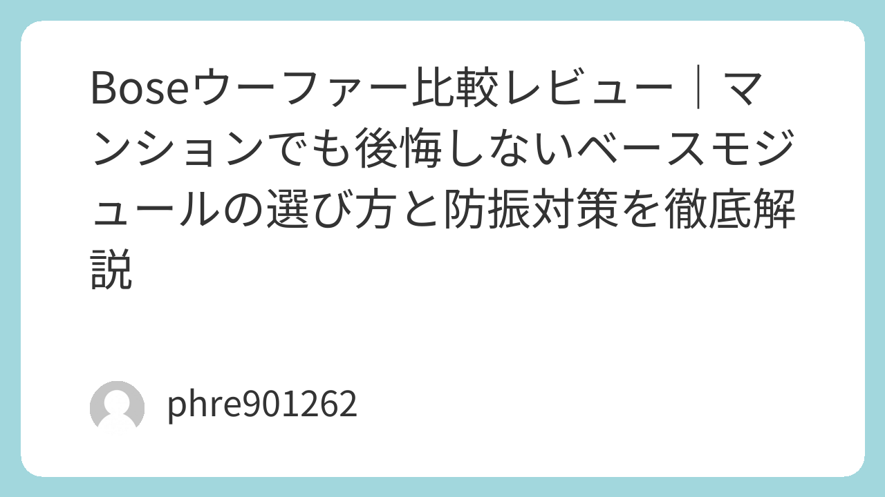 今回は、実際に自宅でBoseのウーファーを使い込んでいるユーザーの視点から、機種の選び方やマンションでの設置のコツなど、リアルな体験談を交えてお届けします。
