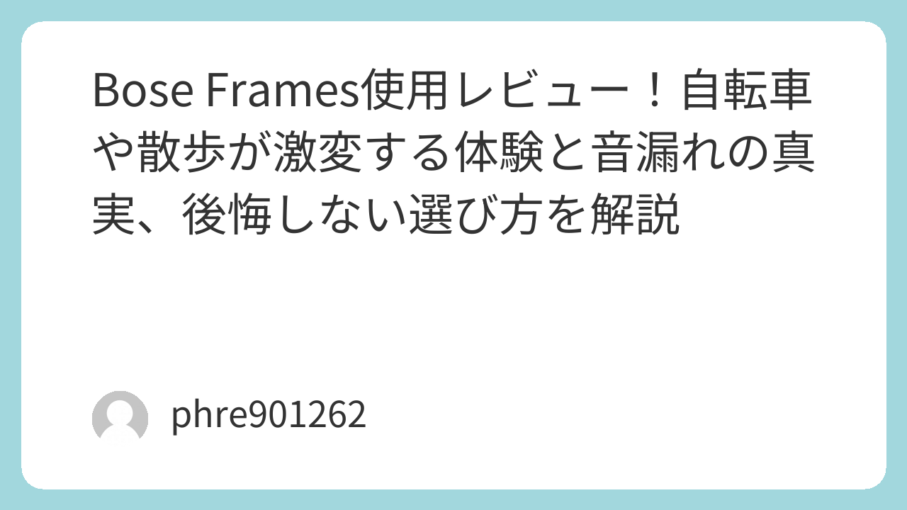 Bose Frames使用レビュー!自転車や散歩が激変する体験と音漏れの真実、後悔しない選び方を解説