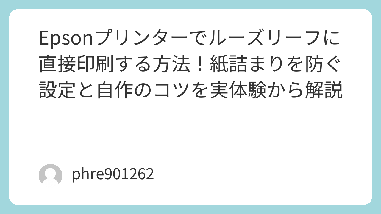 実は、エプソンのプリンターでルーズリーフ印刷を成功させるには、ちょっとした「現場の知恵」が必要なんです。この記事では、私が何度も失敗して辿り着いた、故障を避けつつ綺麗に刷るための実践テクニックを共有します。