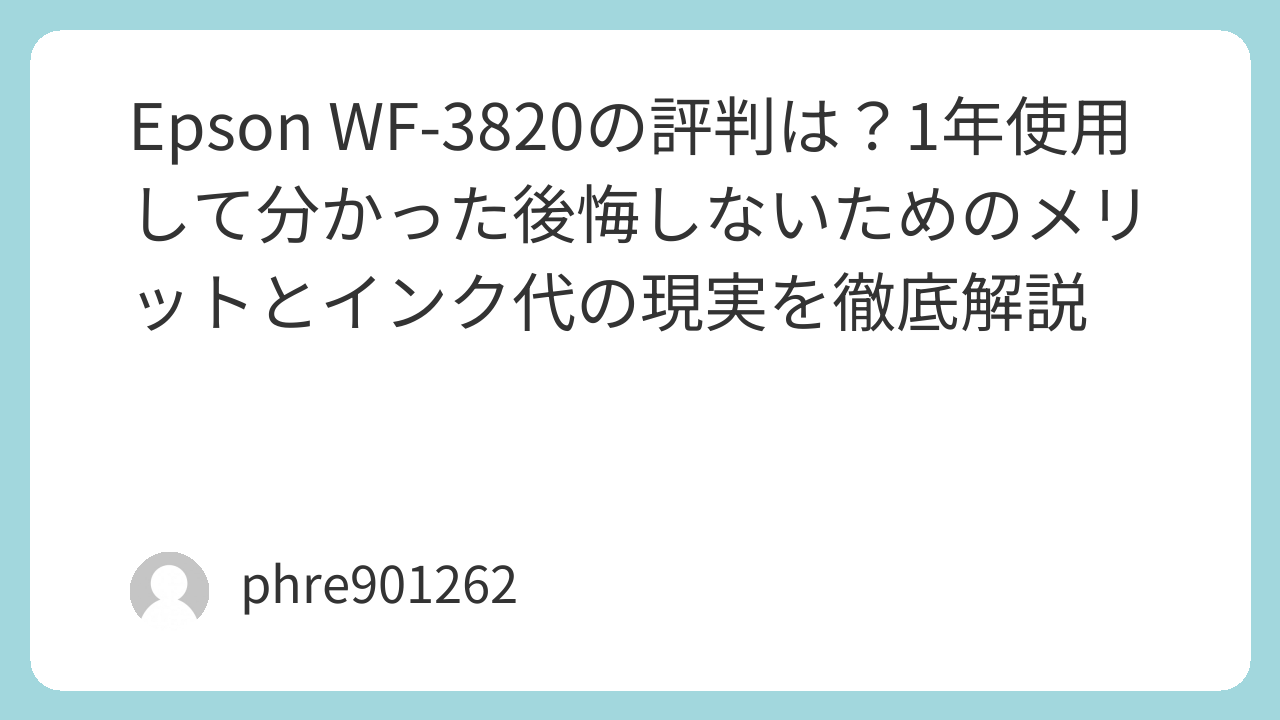 Epson WF-3820の評判は?1年使用して分かった後悔しないためのメリットとインク代の現実を徹底解説