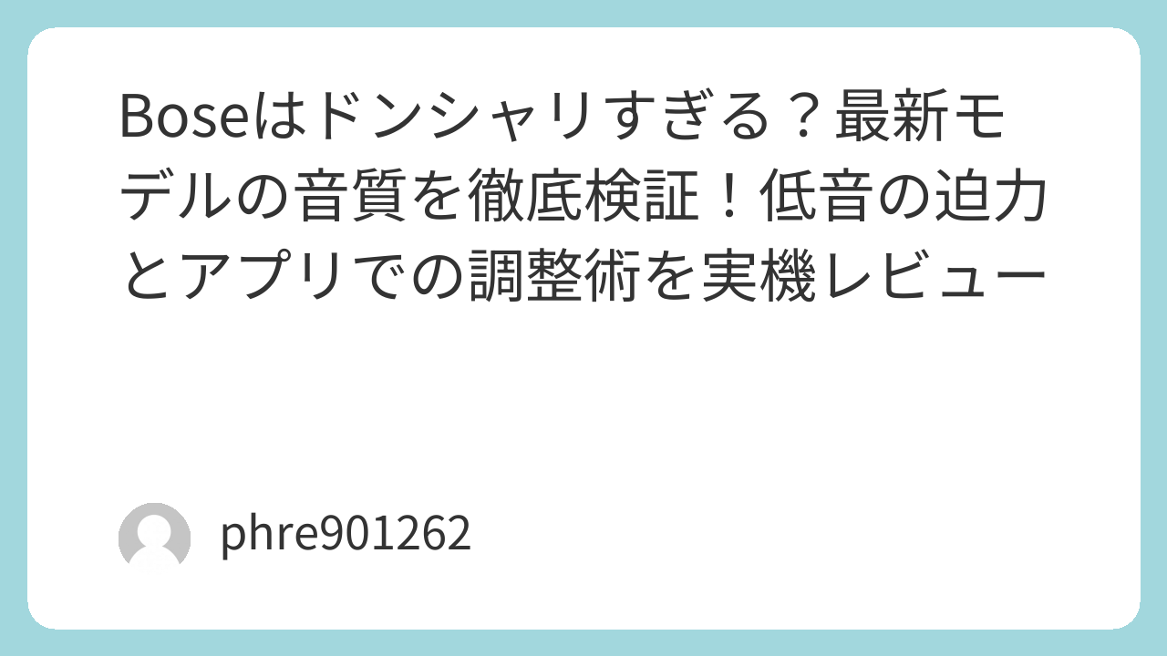 - ボーカルを際立たせたい時: 「低音:-3」「中音:+2」「高音:+1」これで、Boseらしい迫力を残しつつ、J-POPやアニソンのボーカルがグッと前に出てきます。