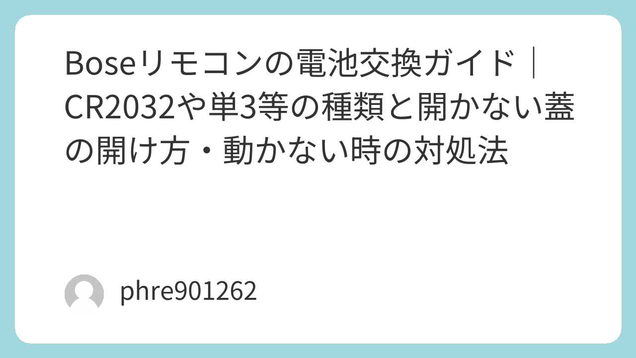 - 体験談: 100円ショップの電池でも動きますが、私は以前、安価な電池で液漏れを起こしてリモコンを1つダメにしました。それ以来、大切なBoseにはパナソニック CR2032などの国内メーカー製を指名買いしています。