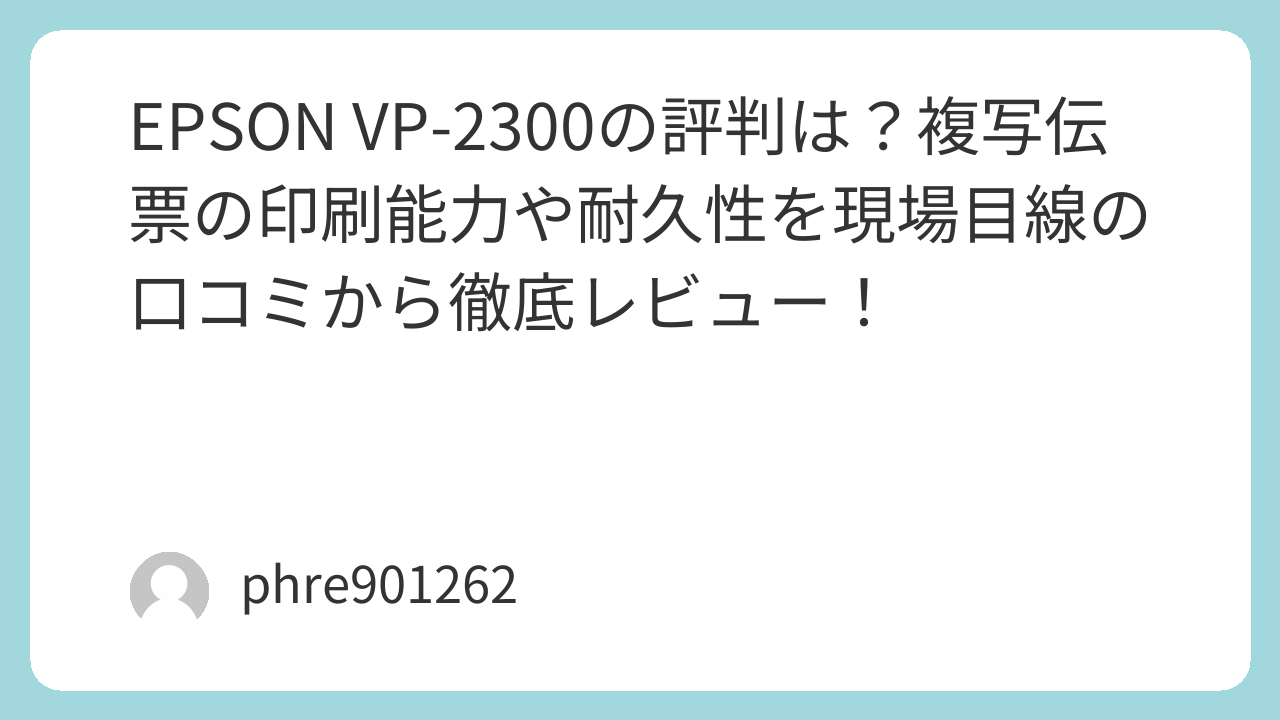 今回は、実際に数万枚の伝票を叩き出してきた現場の体験談を交え、EPSON VP-2300の実力と、導入前に知っておくべき注意点を本音でレビューします。