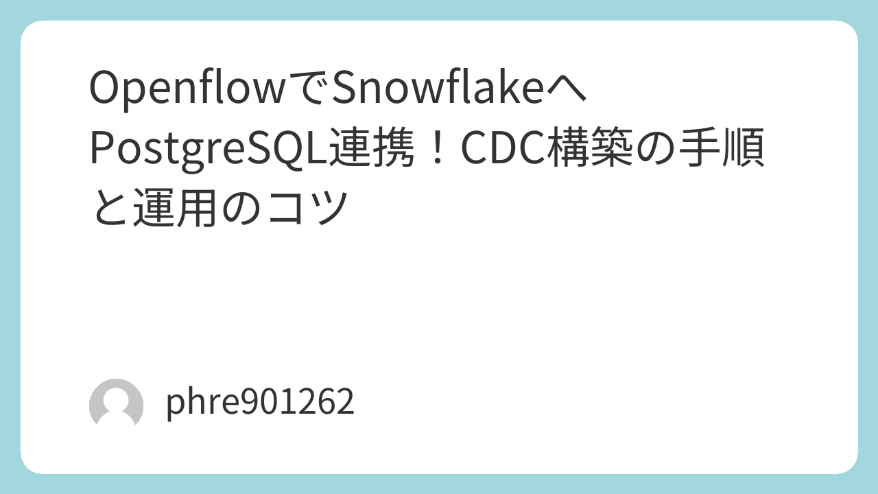 Openflow×Snowflake×PostgreSQLは、「CDCで追いかけたい」「将来ソースが増える」「中継や加工も視野に入る」ケースで強いです。 (スノーフレークドキュメント)