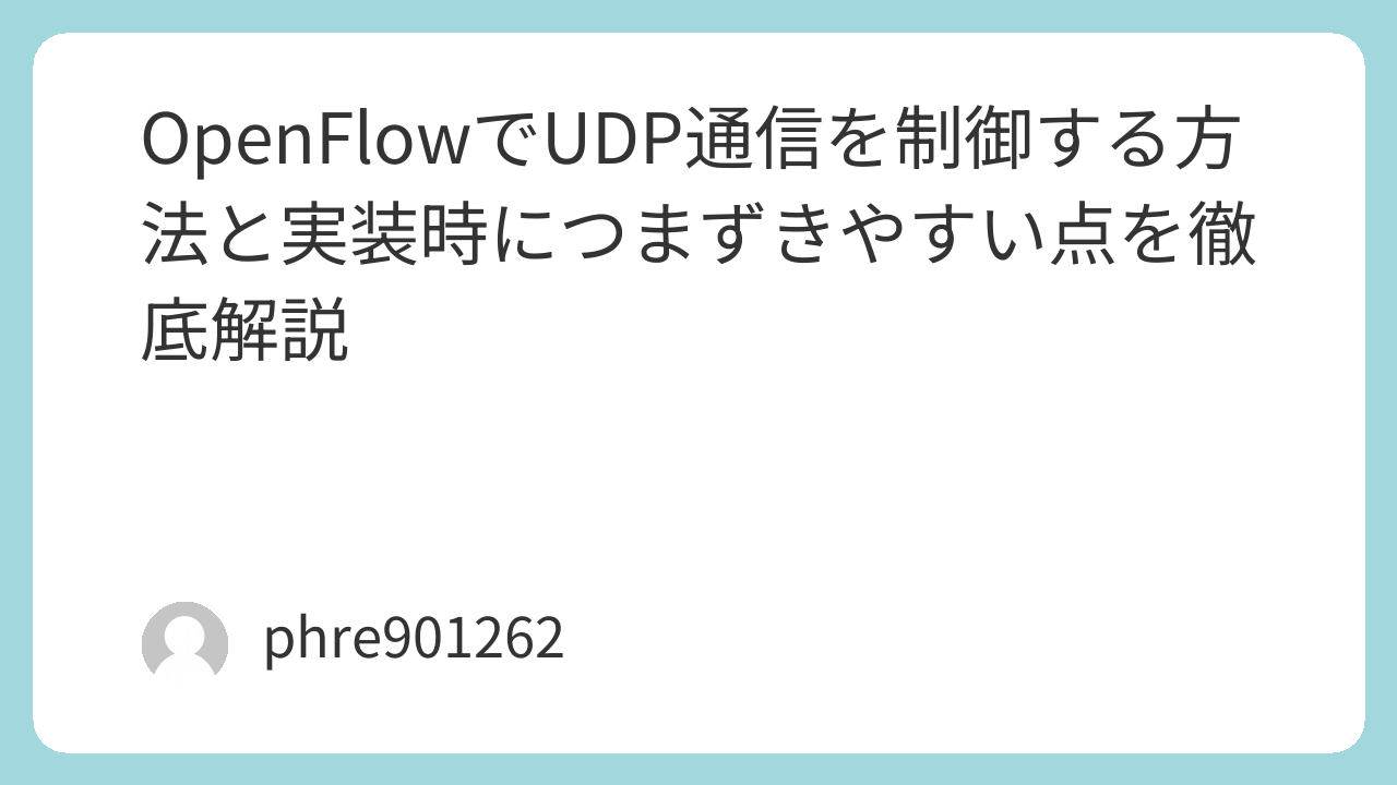 OpenFlowとUDPの組み合わせは、SDNの学習題材としても、実装の確認素材としても優秀だ。ただし、うまくいくときほど理由を理解しておきたいし、うまくいかないときほど基本へ戻る冷静さが要る。そこを押さえておけば、MininetでもOpen vSwitchでもRyuでも、UDP制御はぐっと扱いやすくなる。