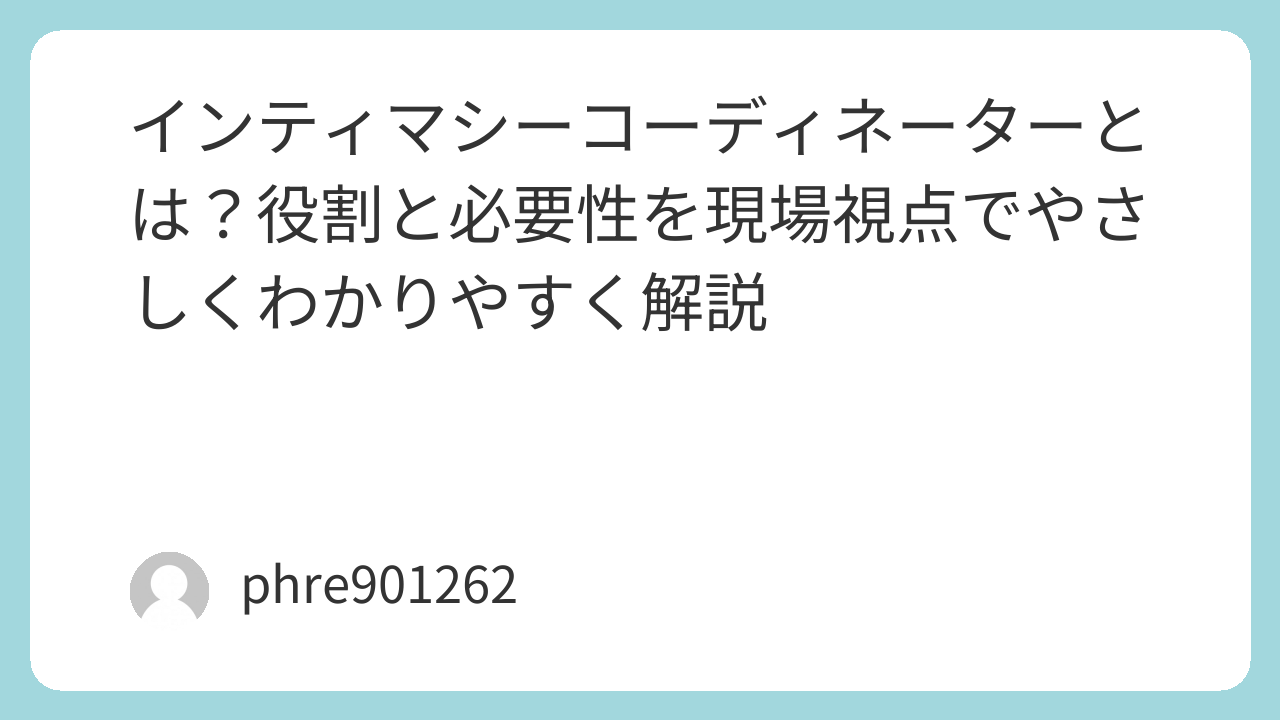 親密なシーンは、演技力だけで成立するものではありません。信頼関係、段取り、言語化、共有、確認。そのどれかが欠けても、演じる側には大きな負担がかかります。だからこそ、そこを専門的に担う人が必要になるのです。