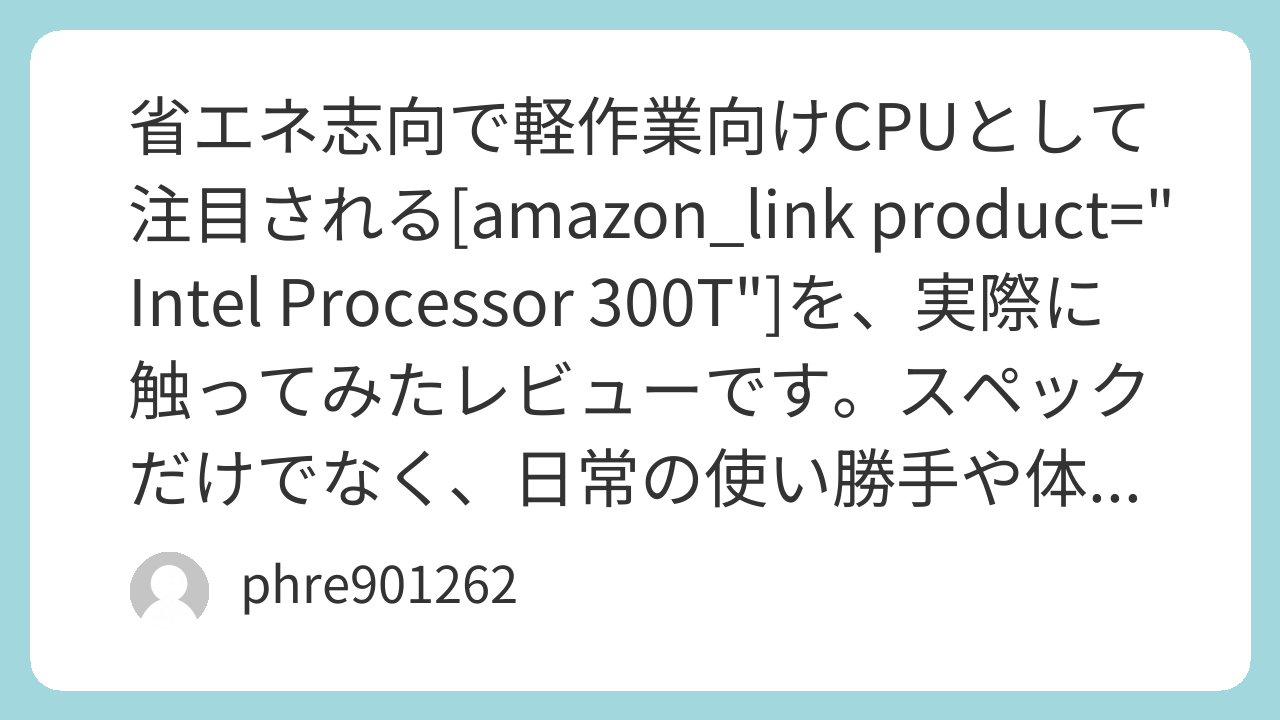 Intel Processor 300Tは、省エネ性と日常作業の体感パフォーマンスが両立したCPUです。実際に使ってみても、軽い作業やオフィス用途では十分以上の能力を発揮しました。一方で、重い処理を多用する人にはパフォーマンスの物足りなさも感じられるでしょう。