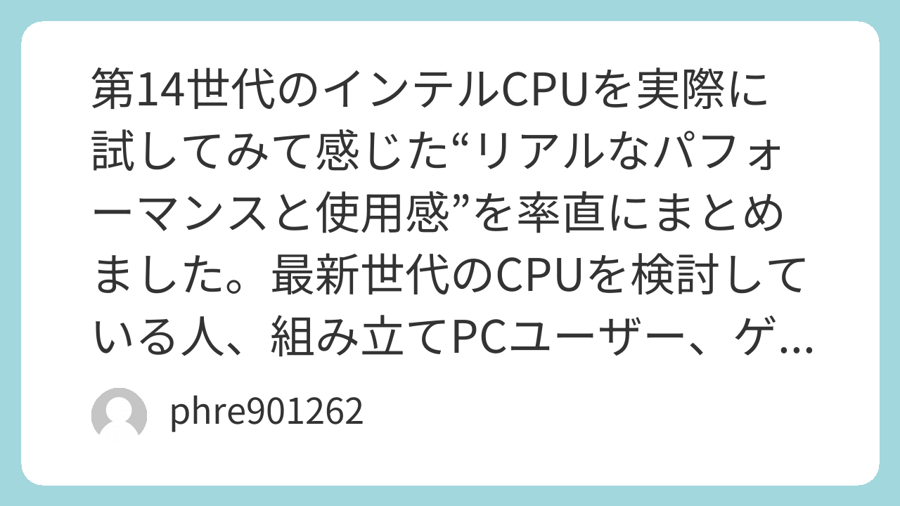 僕の体験から言うと、第14世代Intel Coreは次のような人におすすめです:
