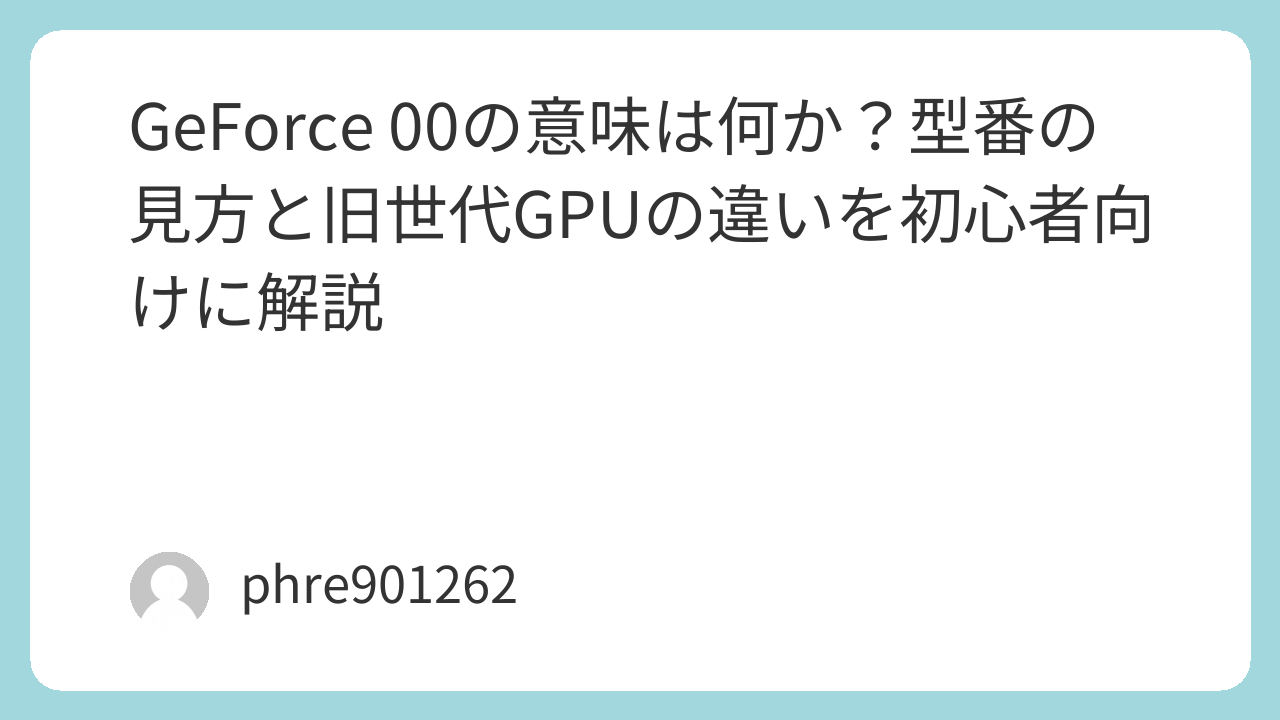 「geforce 00」で検索する人の多くは、たぶん新品の最新GPUを買おうとしているわけではありません。古いPCをもらった、押し入れから昔のパーツが出てきた、中古品を見て意味が分からなかった。そういう場面が多いはずです。