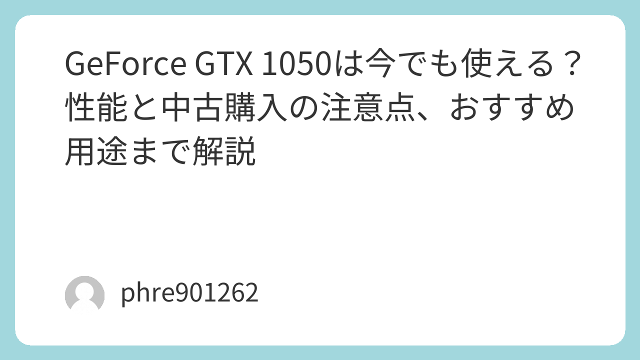 GeForce GTX 1050は今でも使える?性能と中古購入の注意点、おすすめ用途まで解説