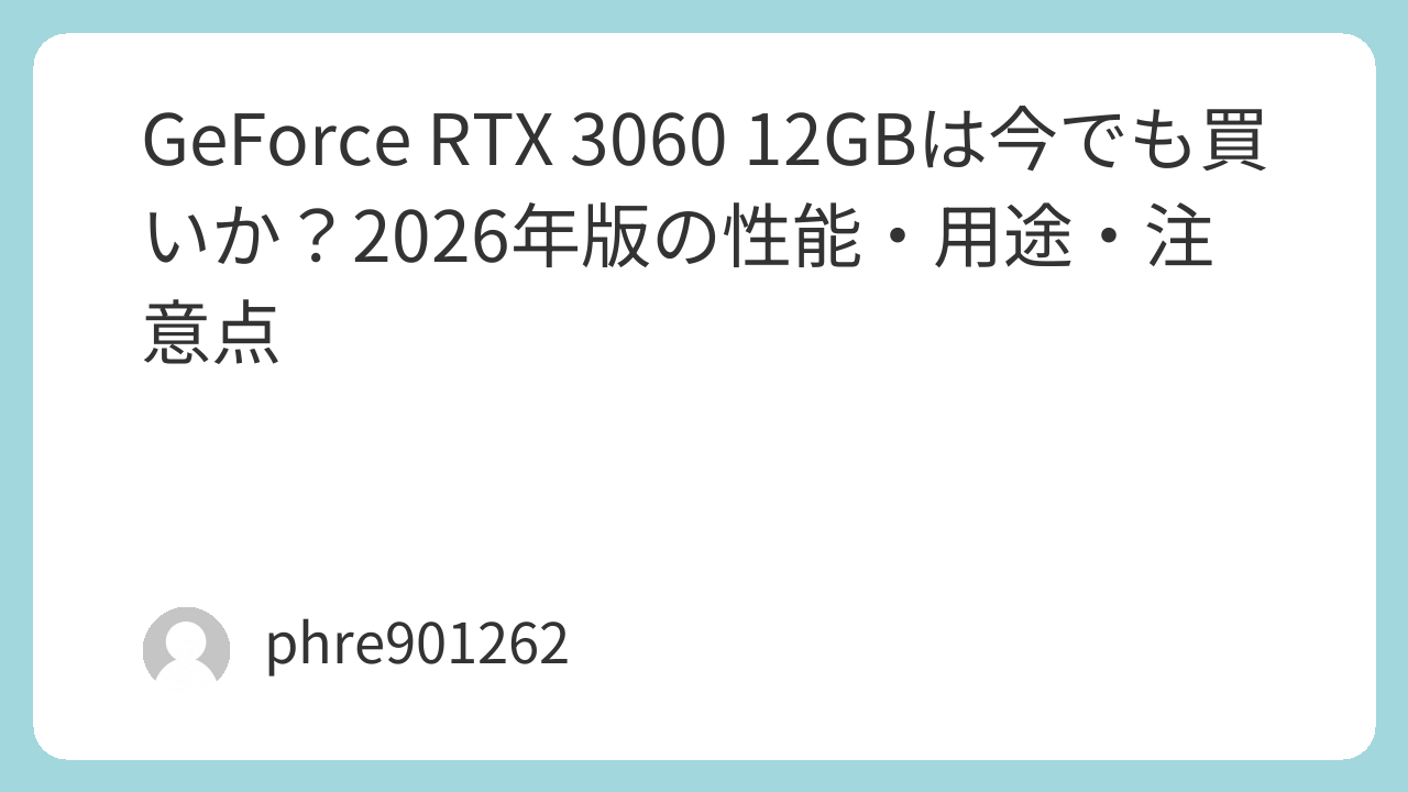 GeForce RTX 3060 12GBは今でも買いか?2026年版の性能・用途・注意点