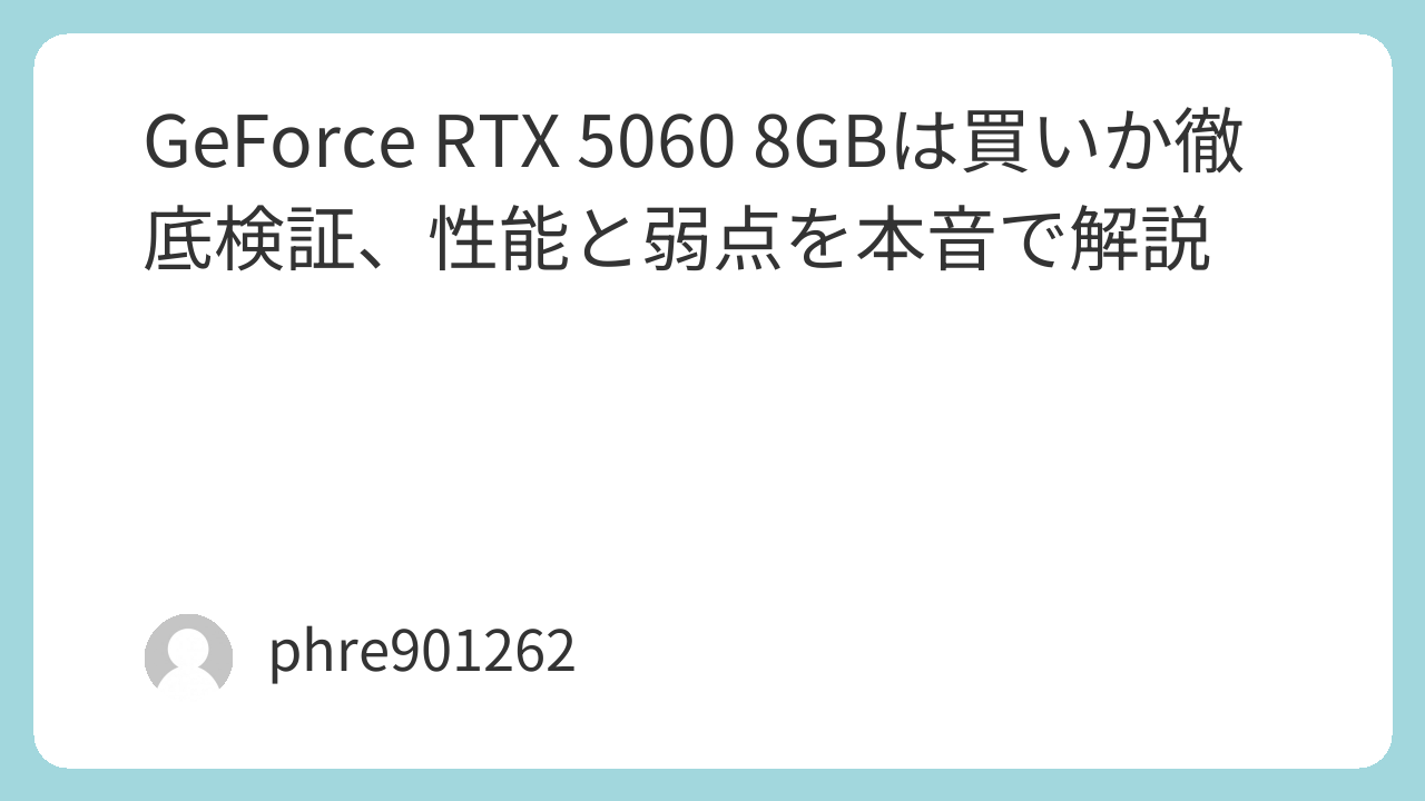 GeForce RTX 5060 8GBの立ち位置を先に整理しておく