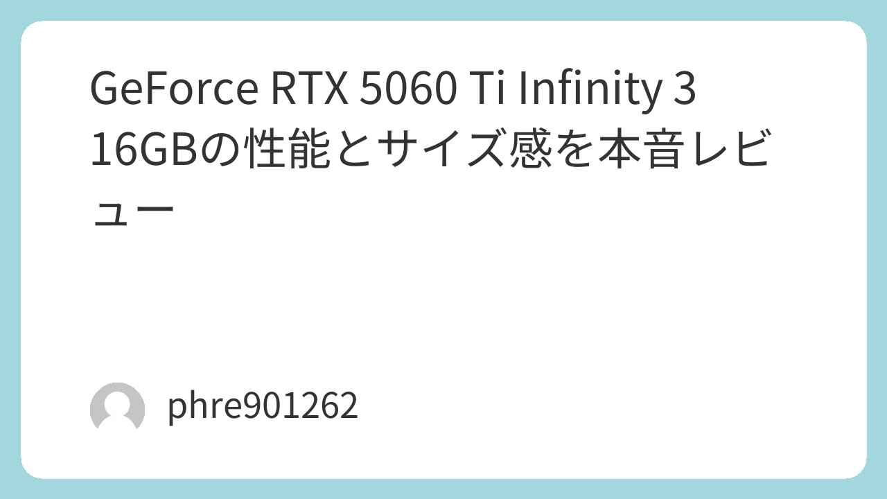 [amazon_link product=”GeForce RTX 5060 Ti Infinity 3 16GB”]は、1080pでの快適さ、1440pへの対応力、16GBメモリの安心感、そして組みやすいサイズ感をうまく両立したモデルです。圧倒的なハイエンド感を求める製品ではありませんが、日常的に使うPCの中で無理なく高い満足を出しやすい。この一点が非常に強いです。