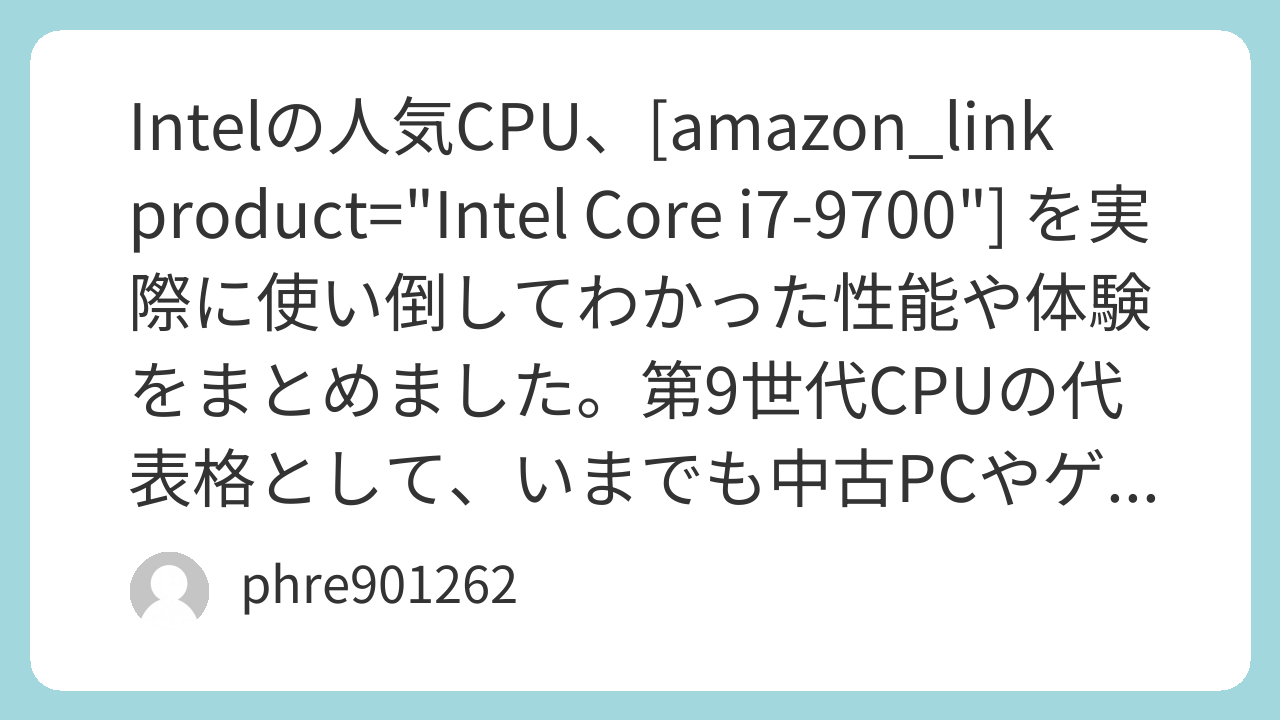 Intelの人気CPU、[amazon_link product="Intel Core i7‑9700"] を実際に使い倒してわかった性能や体験をまとめました。第9世代CPUの代表格として、いまでも中古PCやゲーミング環境で見かけることが多いモデルです。実際の使用感を中心に、スペックやベンチマークと合わせて詳しく解説します。