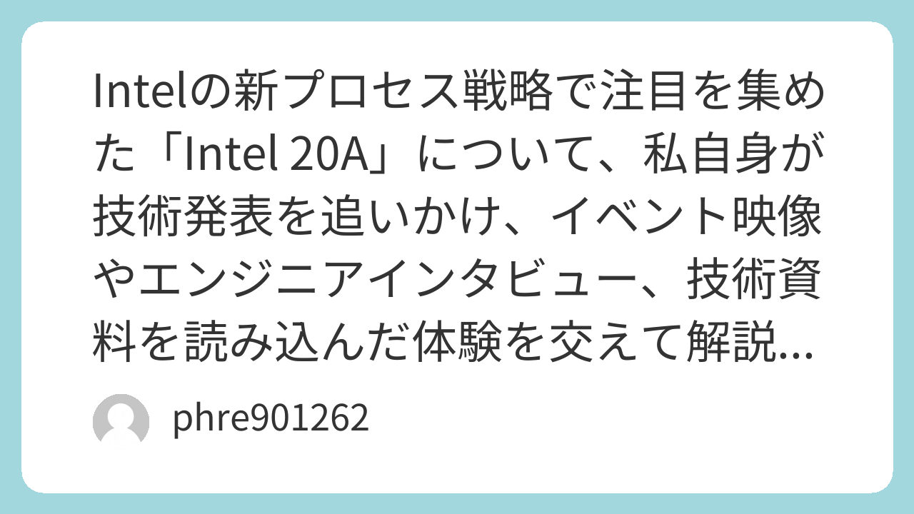 Intel 20Aはその名を冠した製品こそ生まれませんでしたが、半導体プロセスの進化を象徴する技術的なマイルストーンでした。RibbonFETやPowerViaは今後のIntel 18A世代やチップ設計全般に影響を与えていくでしょう。技術発表を追いかける体験から言えば、こうした「失われた世代」のプロジェクトからも多くの学びが得られます。まだ道は長いですが、プロセス戦略の変化は新しい可能性を切り開くものでもあります。
