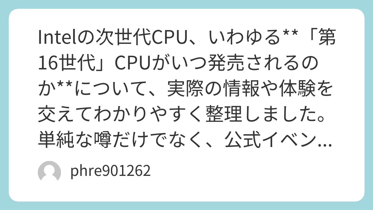 まとめ:Intel第16世代CPUはいつ発売?(体験ベース結論)