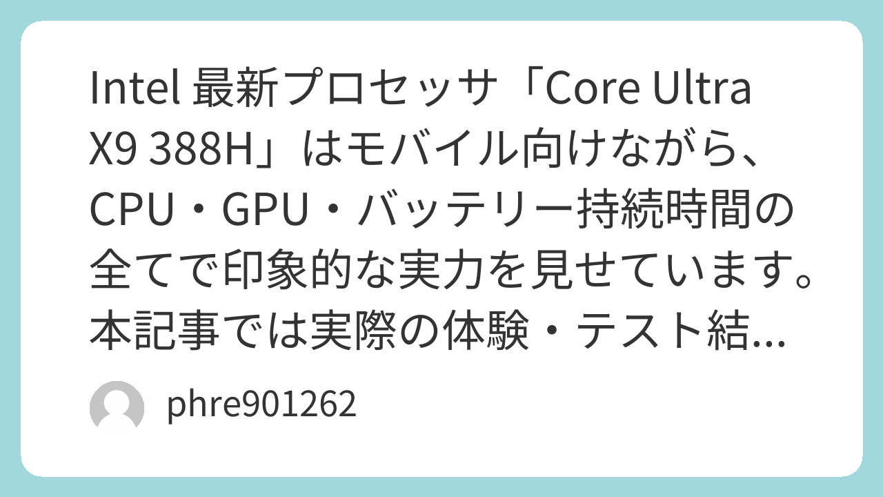 Intel 最新プロセッサ「Core Ultra X9 388H」はモバイル向けながら、CPU・GPU・バッテリー持続時間の全てで印象的な実力を見せています。本記事では実際の体験・テスト結果やベンチマークをもとに、実使用の感触を詳しく紹介します。(ITmedia)