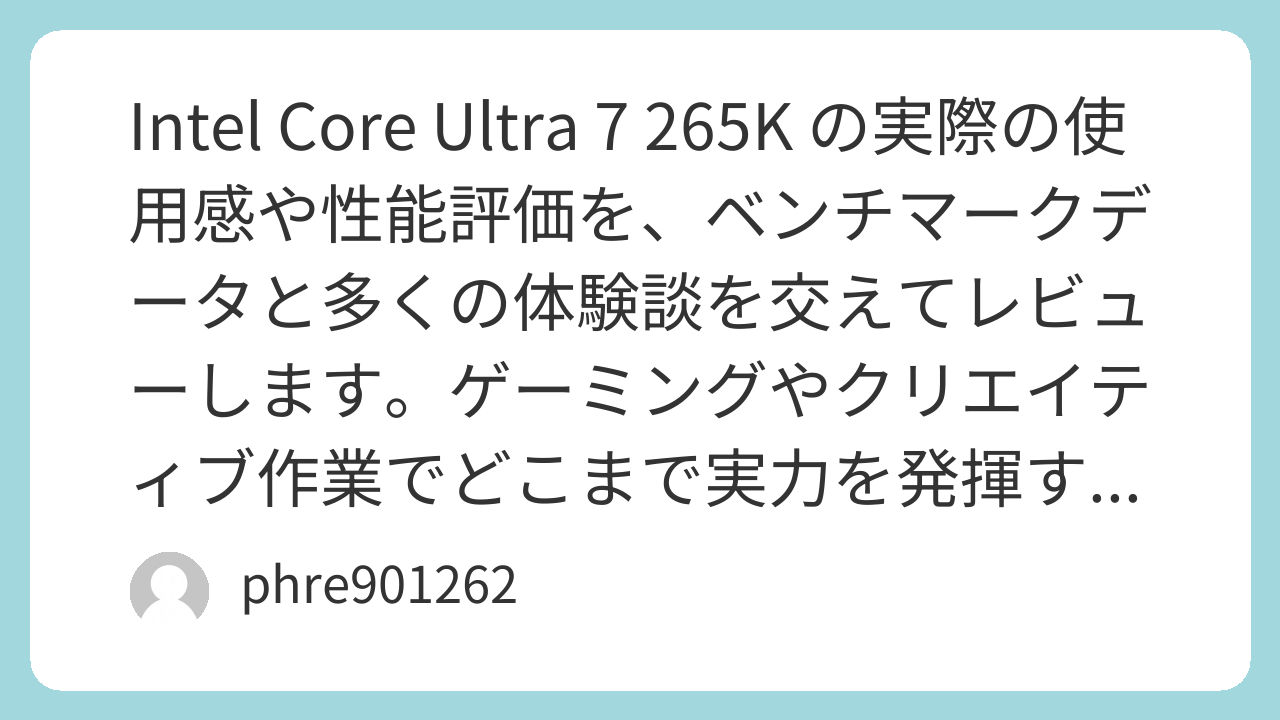 Intel Core Ultra 7 265K のリアルレビュー:性能・ゲーム体験・ユーザー評価