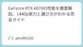私自身、コスパ重視の構成を考えるときは、この帯のグラボにかなり惹かれます。理由は明快で、グラボだけに予算を寄せすぎず、SSDやメモリ、モニター側にもお金を回しやすくなるからです。PC全体の満足度で考えると、この発想はかなり大事です。