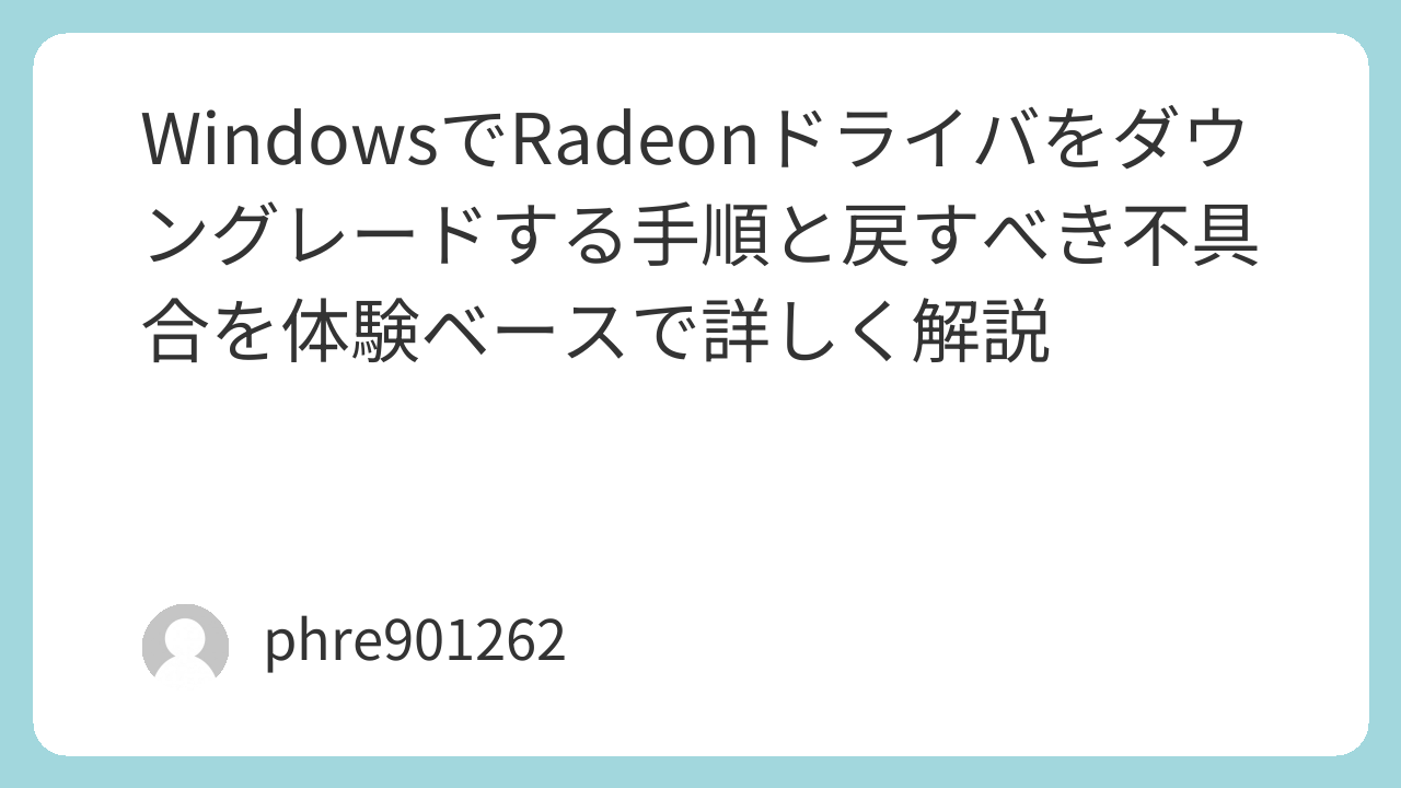 Radeonドライバのダウングレードは、更新後に不具合が出たときの現実的な対処法です。特に、更新直後からゲーム中のカクつき、設定適用時のフリーズ、ブラックスクリーン、復帰失敗などが増えたなら、一段階前の安定版へ戻す価値は十分あります。