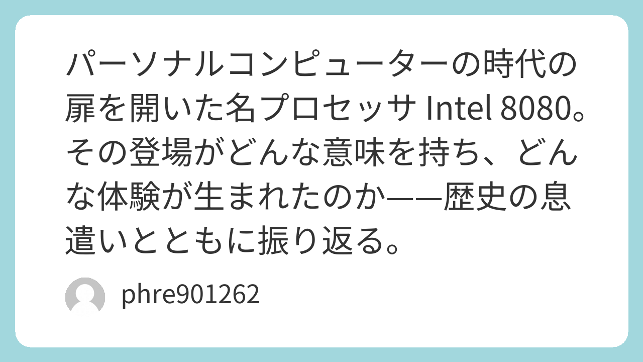 パソコン時代を切り開いた名CPU Intel 8080の魅力と黎明期の体験談