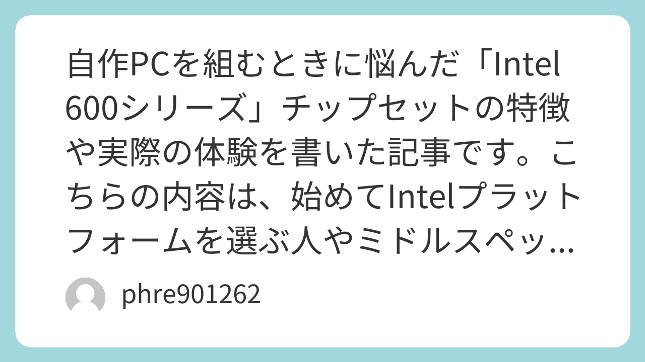 Intel 600シリーズを選ぶ際に私が重要だと思ったポイントは次の通りです: