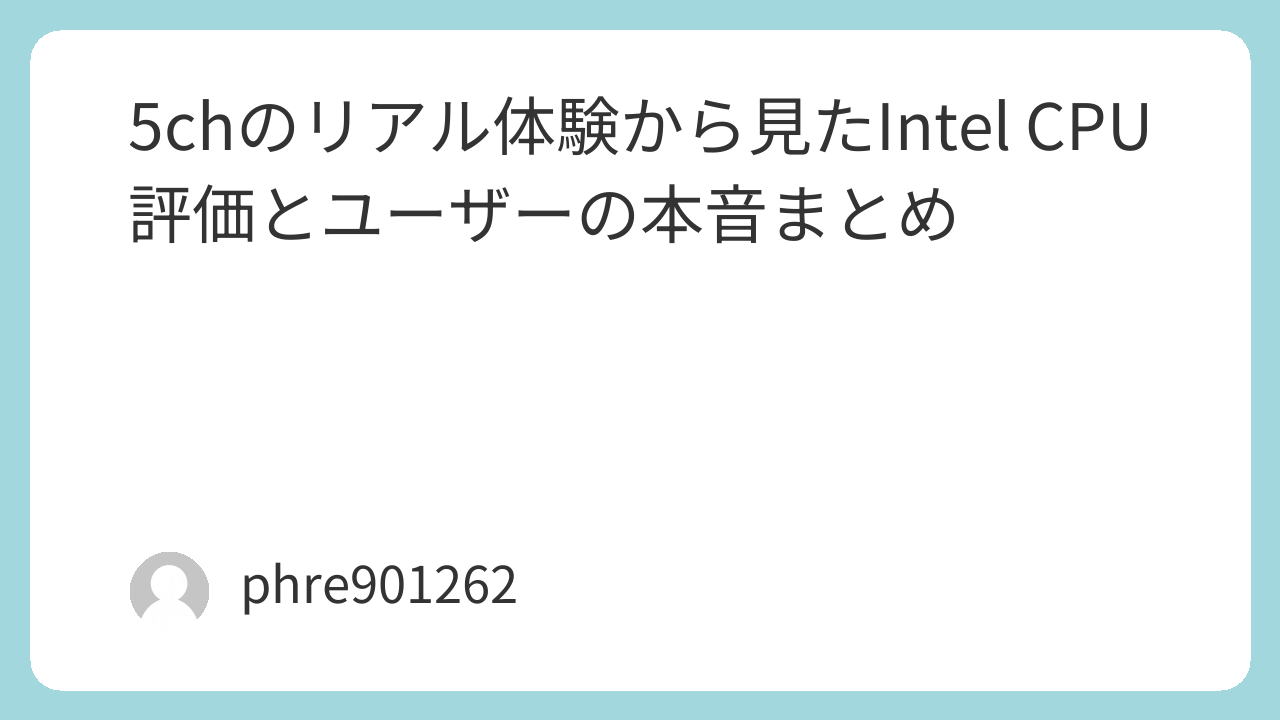5chのリアル体験から見たIntel CPU評価とユーザーの本音まとめ