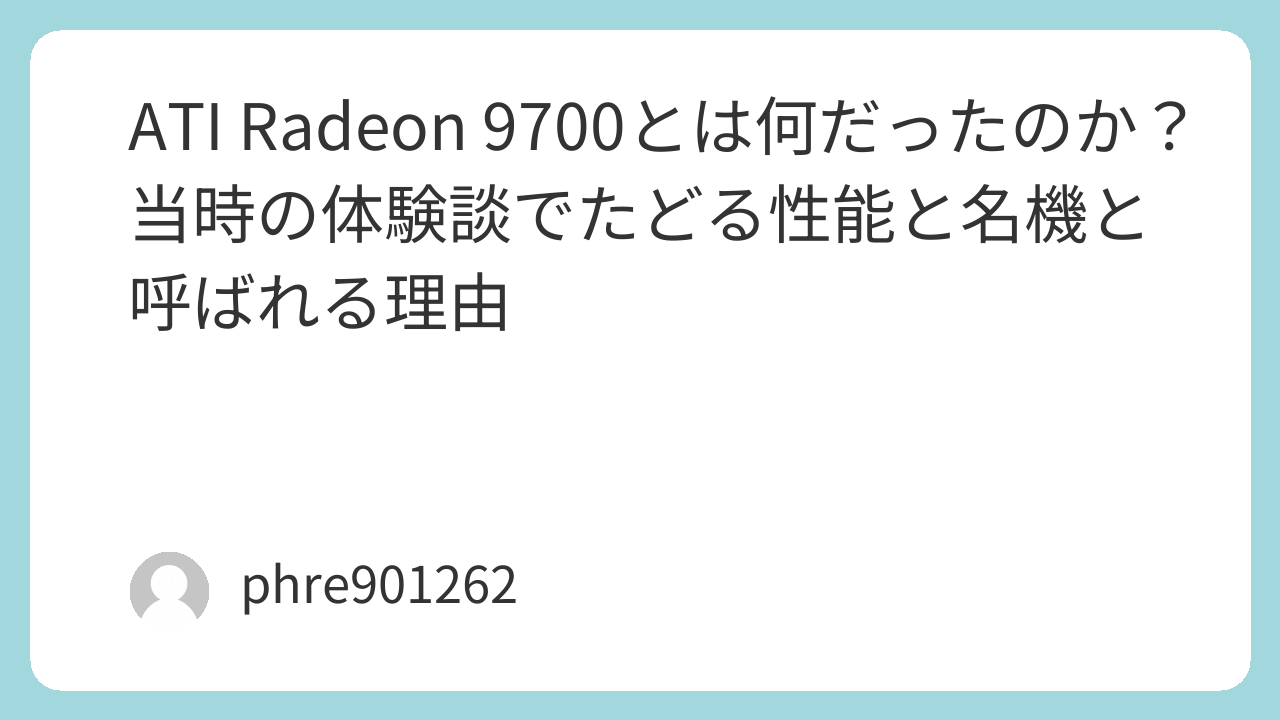 名機と呼ばれるパーツには、良い記憶だけでなく少し面倒だった記憶もつきものです。ATI Radeon 9700もそのひとつでした。