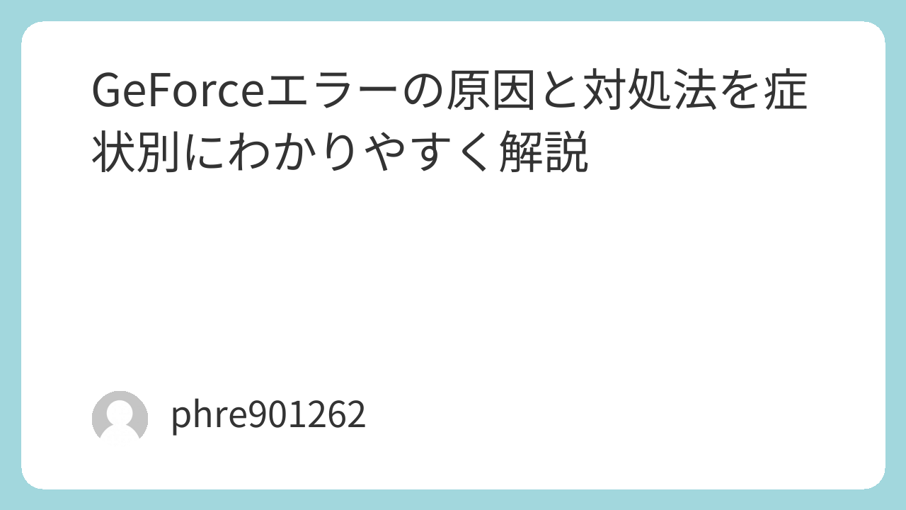 この記事では、よくあるGeForceエラーの原因と、実際に試して効果が出やすかった対処法を症状別にまとめます。