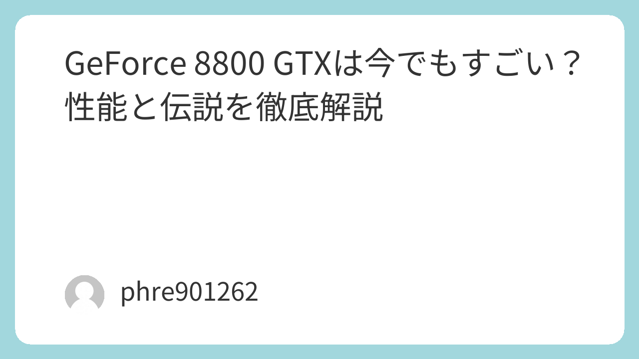 GeForce 8800 GTXは、いまの基準では確かに古いGPUです。性能だけ見れば、現代用途で主力にするのは難しいです。ですが、それでもなお語られる理由があります。