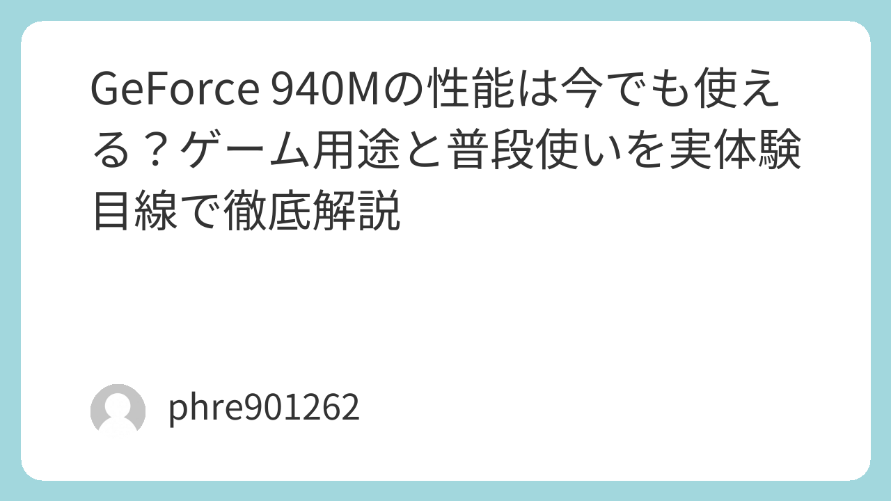 私は古いGPU搭載ノートに触れるたび、性能表よりも、どこまで割り切れるかのほうが大事だと感じます。GeForce 940MもまさにそういうGPUです。