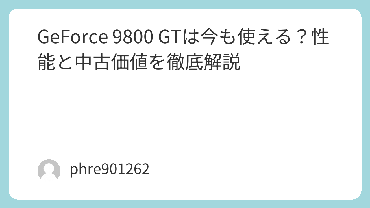 昔の環境を楽しみたいなら、GeForce 9800 GTは今でもおもしろい存在です。けれど、普段使いの快適さを求めるなら、別の選択肢を探したほうが早い。そこを見誤らなければ、このGPUは今でも十分に楽しめます。