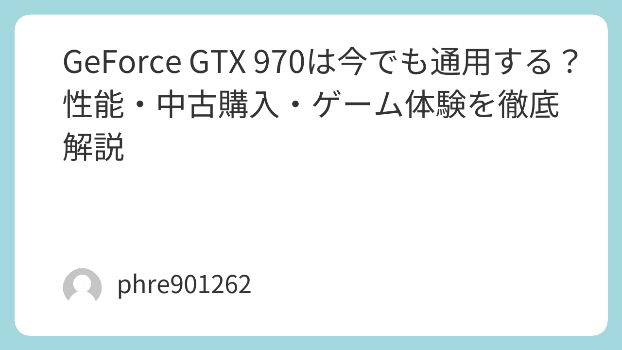 GeForce GTX 970は今でも通用する?性能・中古購入・ゲーム体験を徹底解説