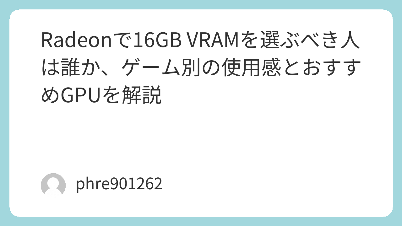 Radeonの16GB VRAMが気になっている人が本当に知りたいこと