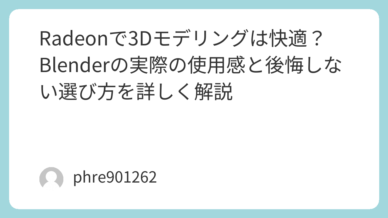 もしこれから3Dモデリングを始めるなら、Radeonは決して外れの選択肢ではありません。ただ、“何を作るか”と“どこでストレスを感じやすいか”を先に考えておくこと。それが、後悔しない選び方につながります。
