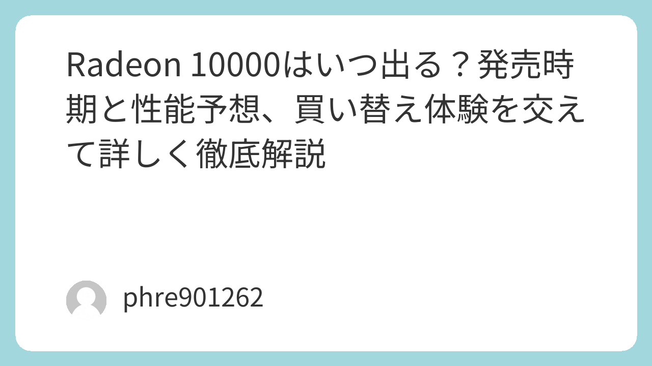 この経験から感じるのは、Radeon 10000の発売時期を考えるときは、「いつ出るか」だけではなく、「その日まで今の環境で困らないか」を一緒に見るべきだということです。