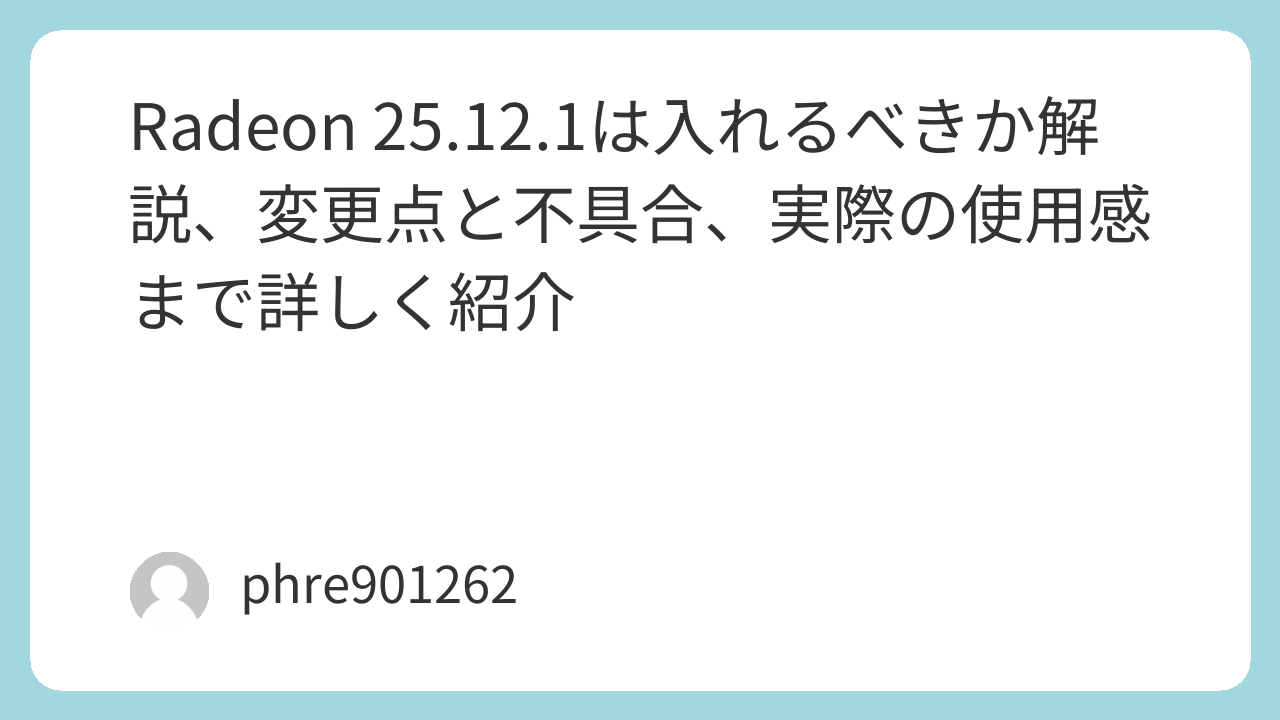 Radeon 25.12.1は、まさにその“体感の差”が出やすいタイプでした。うまく噛み合う環境では「前より扱いやすい」「普段使いで気にならない」という印象になりやすい一方、条件が合わないと細かな不安定さが気になりやすい、そんな立ち位置です。
