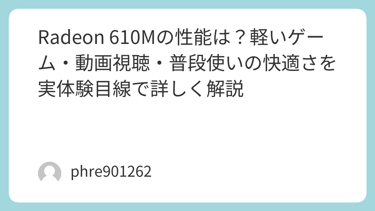 Radeon 610Mの性能は?軽いゲーム・動画視聴・普段使いの快適さを実体験目線で詳しく解説
