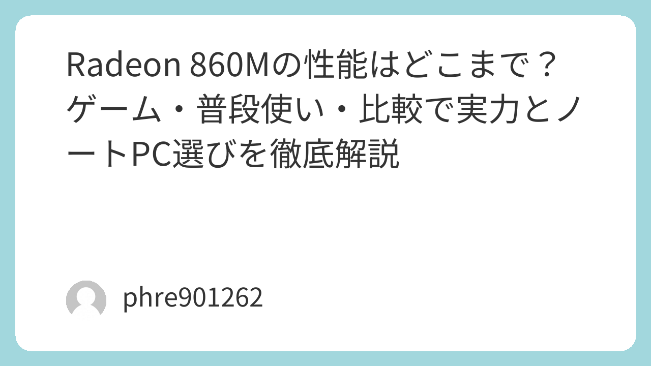Radeon 860Mの性能はどこまで?ゲーム・普段使い・比較で実力とノートPC選びを徹底解説