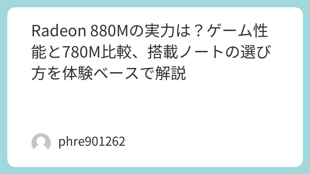 ノートPC選びで内蔵GPUを重視するようになってから、気になる基準がひとつ増えました。カタログの数字が高いかどうかではなく、「実際に何がどこまで快適に動くのか」です。そんな視点で見ると、Radeon 880Mはかなり面白い存在です。
