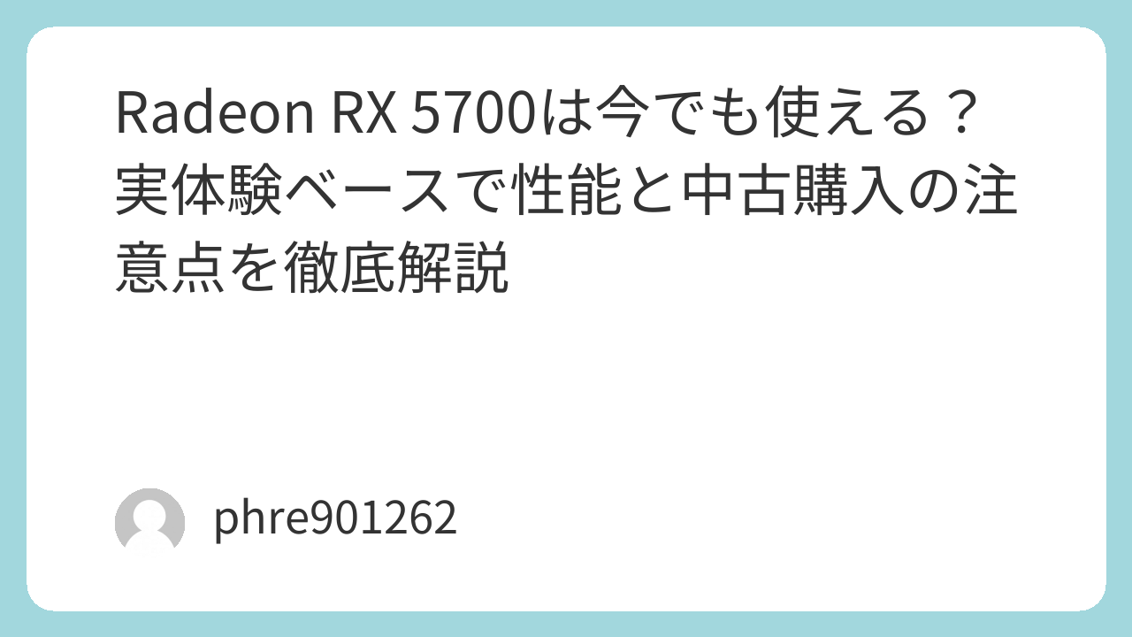 もしあなたが、ただ数字の新しさではなく、「自分の予算でどこまで満足できるか」を重視するなら、Radeon RX 5700はまだ検討する価値があります。特に中古市場で状態のよい個体に出会えれば、価格以上の満足感につながることも十分あります。