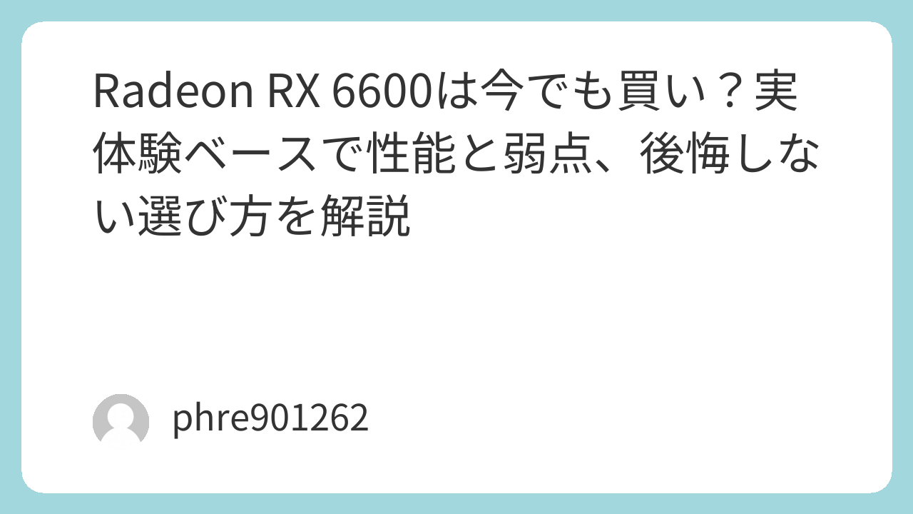 Radeon RX 6600は今でも買い?実体験ベースで性能と弱点、後悔しない選び方を解説