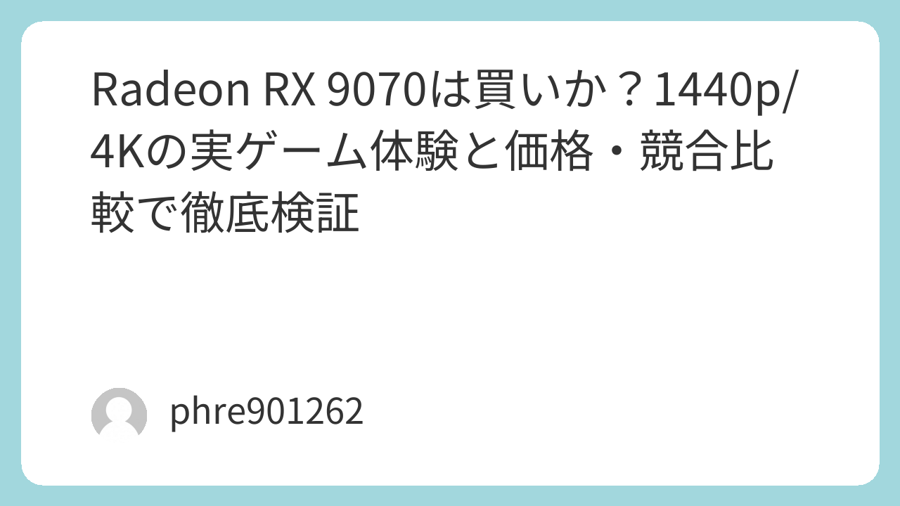 Radeon RX 9070は、ベンチマークだけを見ると堅実な高性能GPUに見えます。しかし、実際に注目すべきなのは、その数字がゲーム体験にどう変わるかです。1440pでは特に扱いやすく、4Kでも工夫次第で十分視野に入る。16GBのVRAMがもたらす安心感もあり、単発の速さだけでなく、長く使ううえでの納得感が強いモデルです。