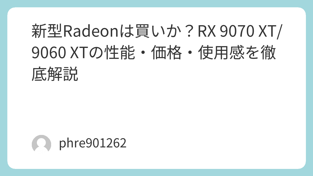 そう考えると、新型Radeonは、いま確かに有力な選択肢です。特に、価格対性能と実際の使い勝手を両立したい人にとっては、かなり魅力のある世代だと言えるでしょう。