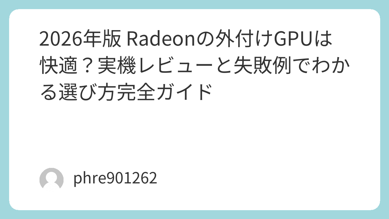 2026年版 Radeonの外付けGPUは快適?実機レビューと失敗例でわかる選び方完全ガイド